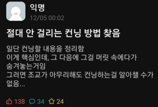 서울대생의 절대 안걸리는 컨닝법 [image: 1773041731786-thumb-2887388519_wtlmkxjq_44565fc053c944ab39435cd7567a3265d45eecaa_600x407.jpg] ㅇㅇ