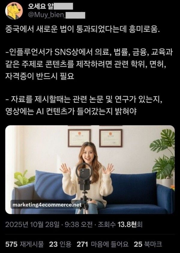 중국에서 통과된 흥미있는 새 법안 [image: 1763710905798-thumb-c64729002af6b0aaaf5d1cbfe505801b_lcuwai0j_5cf6e89044cbb527f8d8df443f087fff8954eef9_600x843.jpg] ㅇㅇ