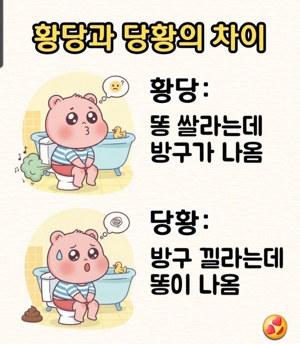 황당과 당황의 차이 [image: 1768104560485-thumb-2c9429173c9e2a7e189a24a4991de973_j9kyh6zo_c3e768de478c9591ff2a9467deb566eb41c93917_600x689.jpg] 다들 경험 있쥬~?