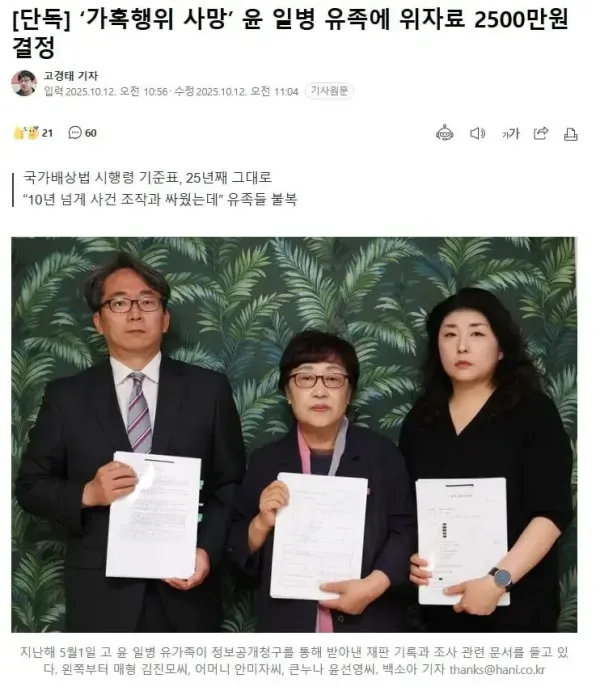 가혹행위로 사망한 윤일병 유족에게 준 위자료 2500 [image: 1768191177121-thumb-64cf393ea3317004d336c70dabaf862b_dojncnzu_e2b0b5b68f2d714dcba3c0275d69e53f37b082a1_600x691.webp] ㅇㅇ