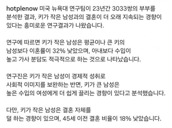 키작남과 결혼하면 더 잘하고 결혼생활 오래간다는