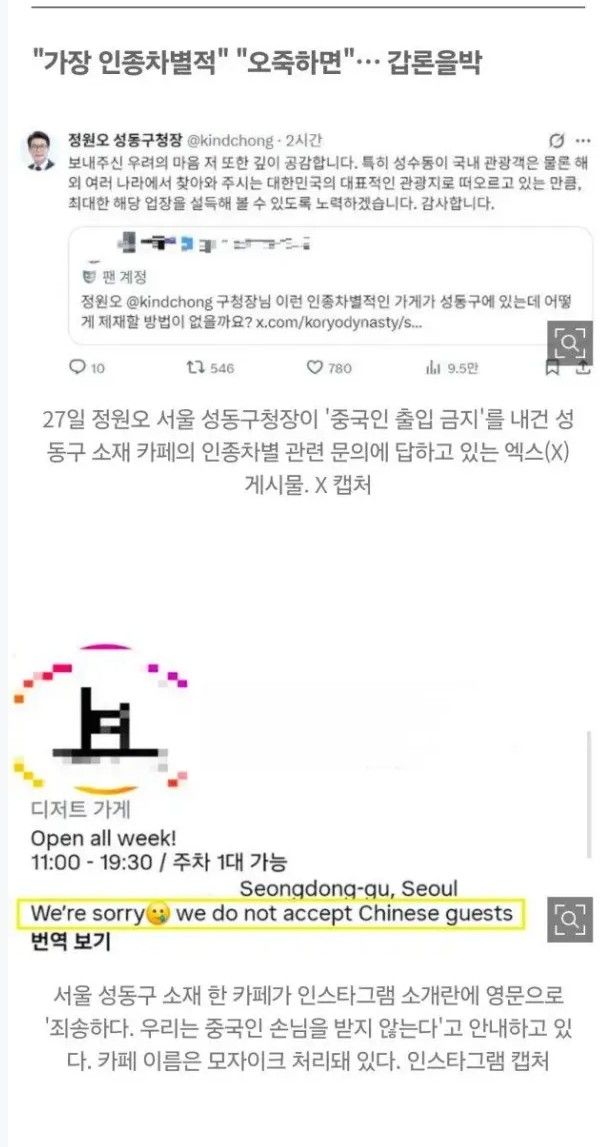 4. 중국인 손님 안받아서 성동구청장까지 나선 성수동카페