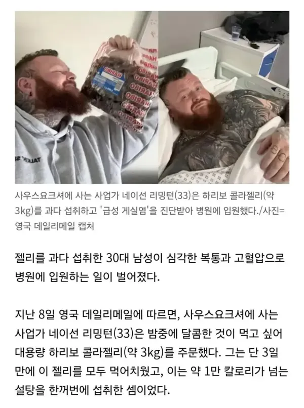 하리보젤리 먹고 응급실 실려간 남