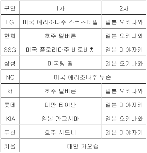 프로야구 10개 구단 2026년 스프링캠프지